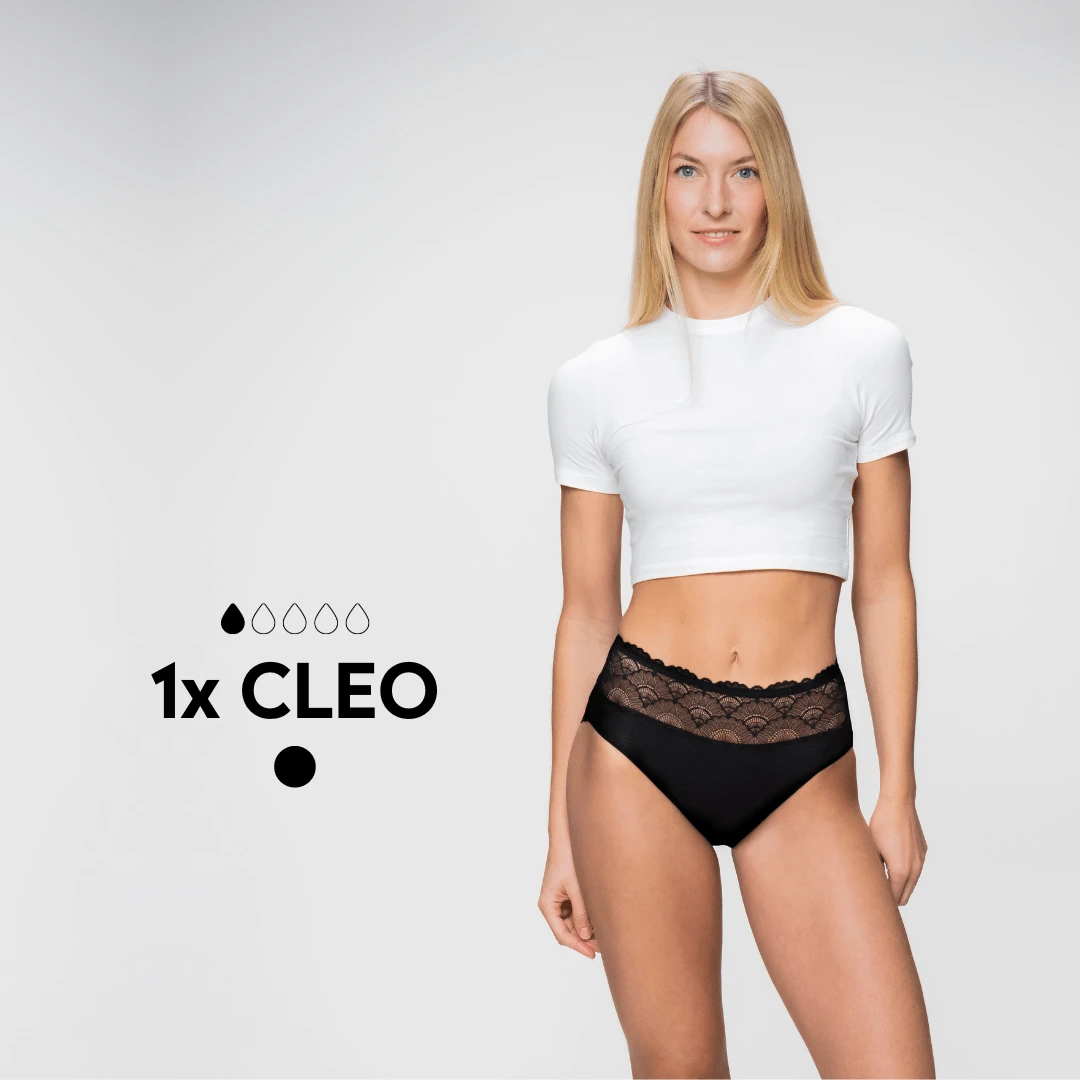 Das dünne 4-Lagensystem besteht aus Bio-Baumwolle, die Feuchtigkeit schnell aufnimmt und von Deinem Körper weg leitet. Die atmungsaktive Membran-Beschichtung verhindert das Austreten der Flüssigkeit nach außen. Somit hast Du ein leichtes, trockenes Tragegefühl. CLEO ist auch für eine sehr leichte Periode geeignet.