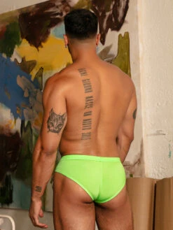 Upgrade your underwear drawer with a sleek and sculpting men’s brief that hugs in all the right places. Made from a lightweight and stretchy lime green fabric, this design delivers a second-skin feel with just the right amount of support. The contoured pouch with center seam ensures a flattering lift, while the seamed back enhances your natural shape. Finished with the Body Aware logo on the front left for a touch of signature style.