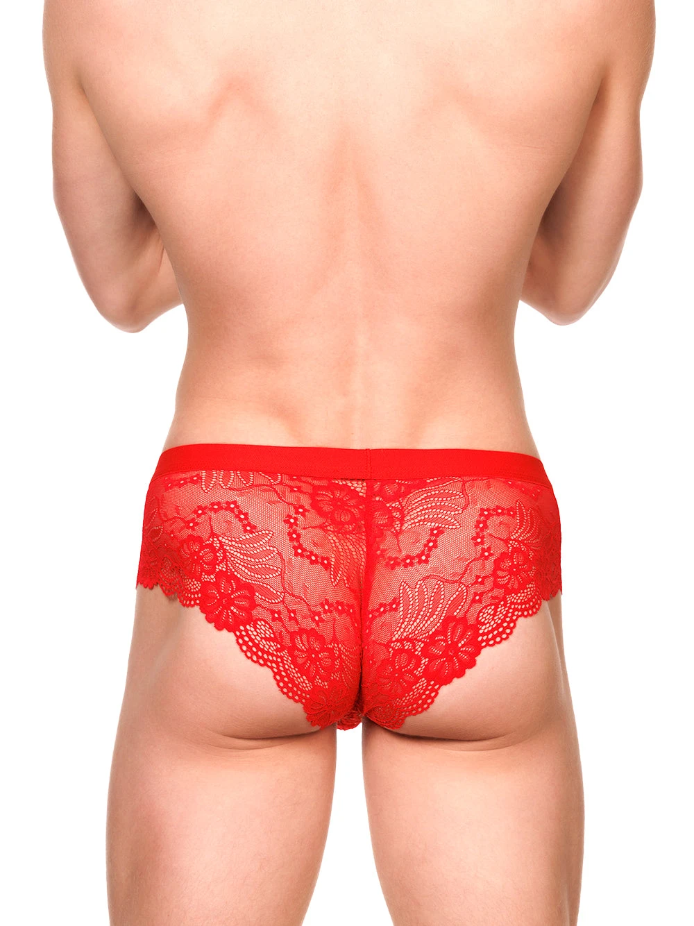 An eye-catching mix of comfort and style, this red lace brief is made for men who like their underwear with a little extra edge. Crafted from soft, scalloped stretch lace, it features a sculpted pouch that supports without restriction and a sleek Brazilian-style back that leaves just enough to the imagination. It’s a daring piece that feels as good as it looks.
