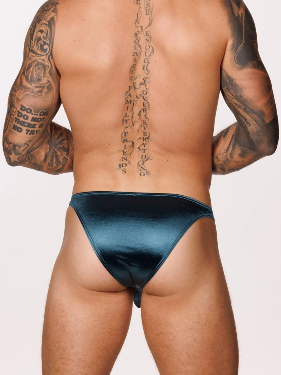 Freshen up your underwear lineup with this strikingly sexy bikini brief in teal. Designed for a sleek look and featuring a contoured pouch with center seam. Crafted from our smooth and stretchy satin fabric that perfectly sculpts to your body and feels great all day long.