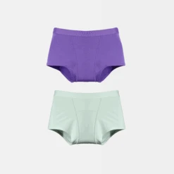 Mit dem JUNO Teen 2er Bundle bist Du bestens für Deine Menstruationstage gerüstet. Jede Packung enthält eine Short in Lila und eine Short in Mint, sodass Du immer die passende Farbe zur Hand hast. Genieße Komfort und Sicherheit mit unserem ROMY Teen Set!