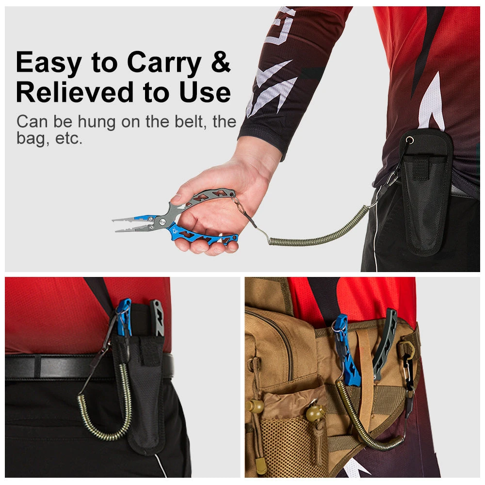 MULTI-FUNCTION JAWS – Can easily grab and remove any hook and also work great to crimp your lead split shot weights. The holes on the jaws can pull the knot connected to the fish hook a bit tighter; And the unique open-loop function on the split ring pliers makes hook removal and replacement a cinch.