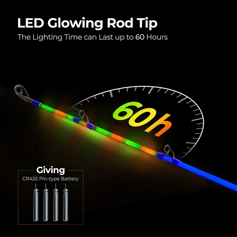 Self-Illuminating Rod Tip: Never miss a catch again with our innovative LED system. The rod tip lights up brilliantly, ensuring you can see every nibble, even in low-light conditions.