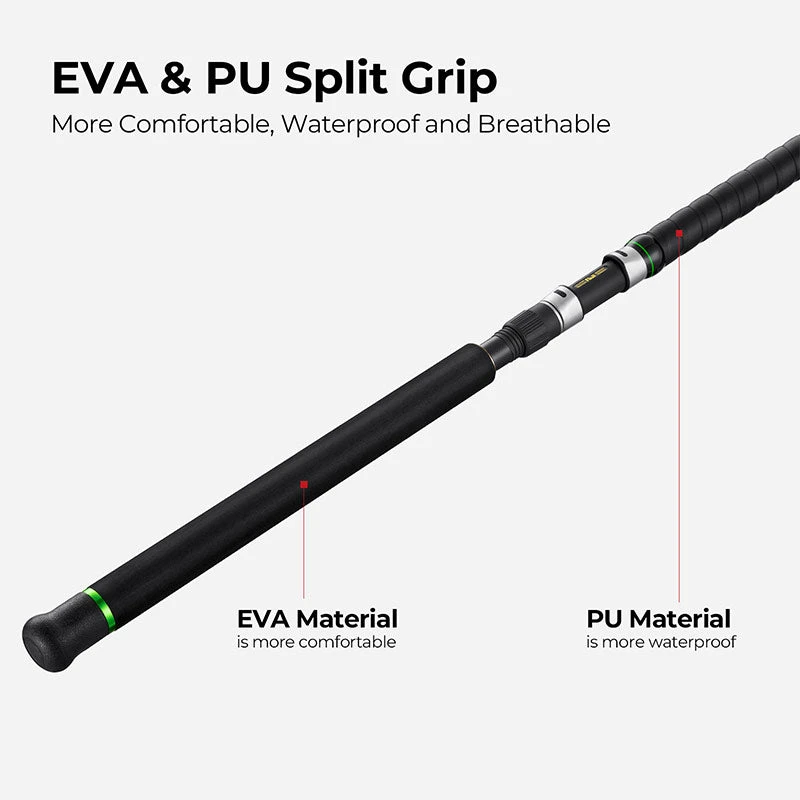 Premium PU + EVA Material: The handle is crafted from a blend of PU and EVA, providing a comfortable and secure grip. It’s designed to be waterproof and breathable, ensuring your hands stay dry and comfortable throughout your fishing trip.