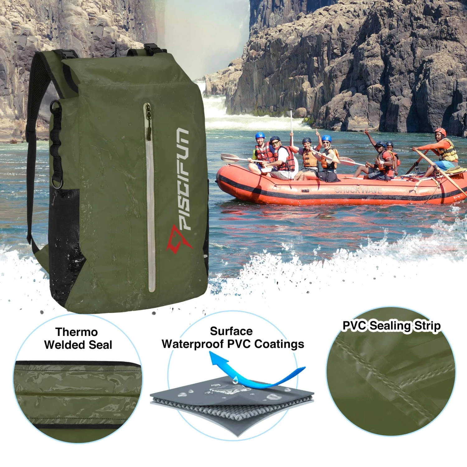 - VERSATILE – Piscifun LT Dry Bag keeps your belongings safe and dry for various activities, such as kayaking, fishing, surfing, boating, camping, rafting, hiking, beach, canoe trips, etc. Amazing gift for outdoor life enthusiasts!
