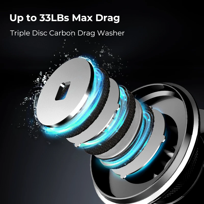 【Smooth Operation】 Features 8+1 double shielded stainless steel bearings for smooth transmission; Spherical structure inside the spool to maintain carbon washer drag flatness for smoother and more stable line cast and retrieve.