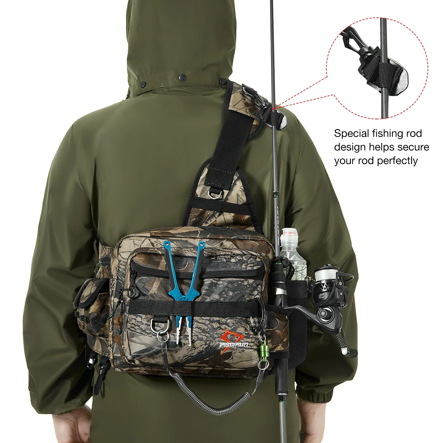 DURABLE & WATER-RESISTANT: Piscifun Slider Sling Fishing bag is made of high density water-resistant 1000D nylon fabric. The abrasion resistant and indestructible KAM buckle and SBS zippers are a lot more durable than others on the market.