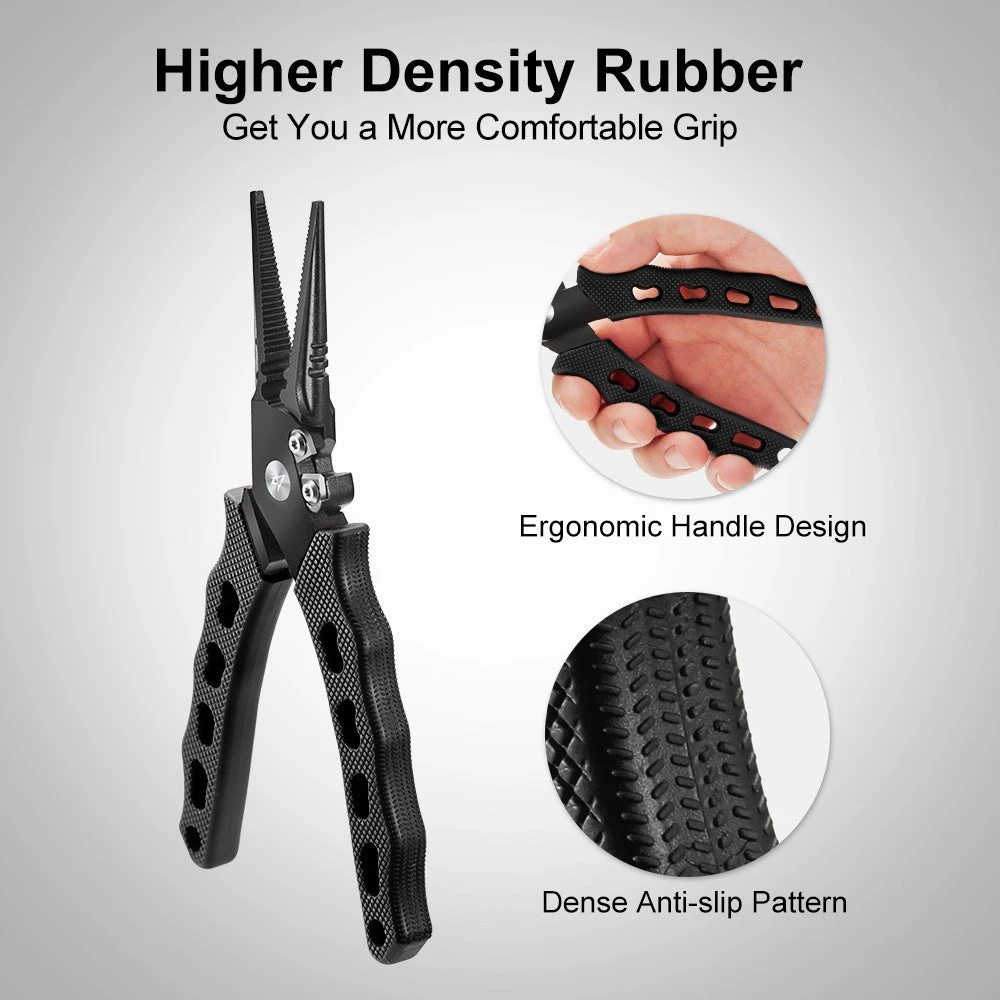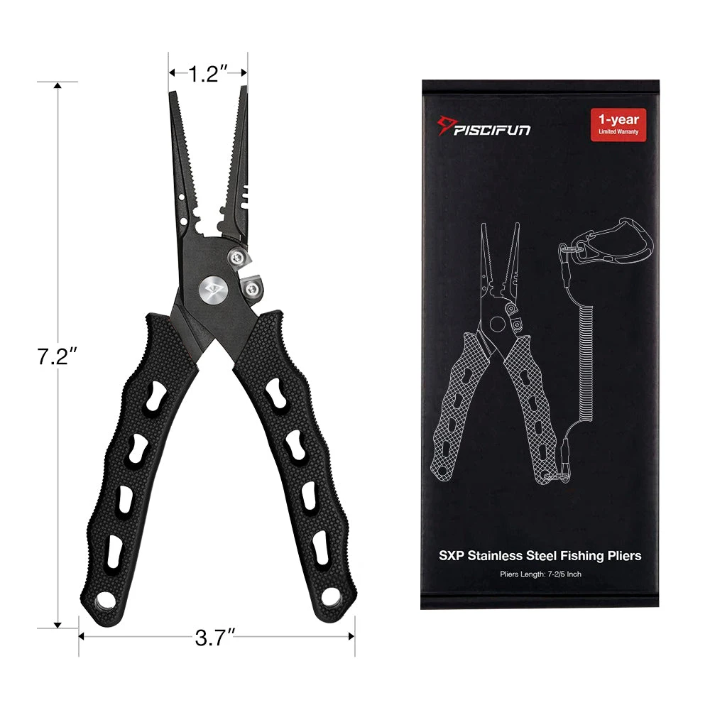 HIGH-QUALITY MATERIAL – Piscifun’s SXP pliers are made of 420 stainless-steel with integrated jaws and handle offer 30% more strength than aluminum pliers. The premium Titanium coating of the pliers provides super resistance to atmospheric, water vapor and oxidizing acid corrosion.