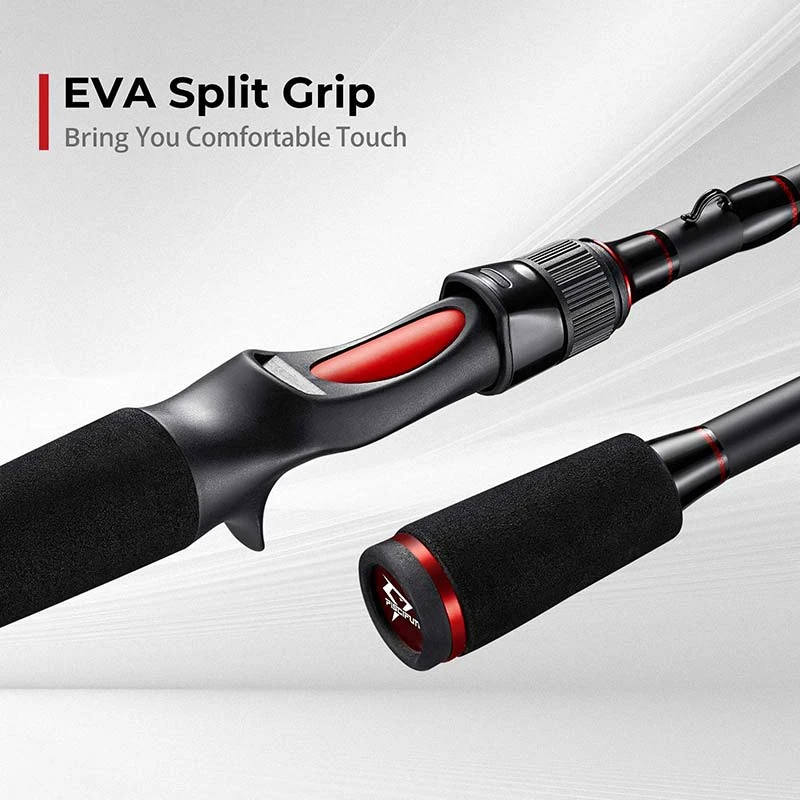Lightweight – The lightweight casting fishing rod design feels balanced in your hand, helps improve your range of movement and keeping fatigue to a minimum. EVA grip offers the firm, comfortable handhold you need to overcome hard-fighting fish.